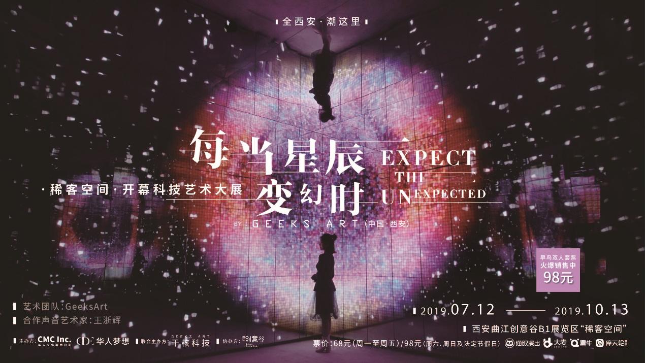 1500m2 的艺术空间,10件艺术作品,如梦如幻的感官体验..... 2019年7月12日起,曲江创意谷“稀客空间(Chic Space)”开幕大展《每当星辰变幻时》正式开启,这场古都新潮科技艺术大展,这段意想不到沉浸式的走心体验,恐怕就是今夏西安不可错过的奇妙之旅。