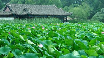 盛夏时节的傍晚,坐在水心榭的廊椅上,任凭清风吹拂着发梢,远处是青山滴翠,眼前是绿水含烟。如画一般的景致,如诗一样的心境,暑气就这样悄然化解在了山水园林之间。每年夏天,最让人期盼与心动的当属荷花了。几乎遍植在避暑山庄湖区内的荷花,如果周敦颐先生能见,想来也不会再有“莲之爱,同予者何人?”的感慨了,因为园内尽是爱莲之人,争相以手中的相机来定格莲花的高洁。如果你是位才情颇具的画者,愿意在湖畔为美丽的荷花绘一幅“肖像”,相信绘出她形态的同时,更能绘出她的品格。