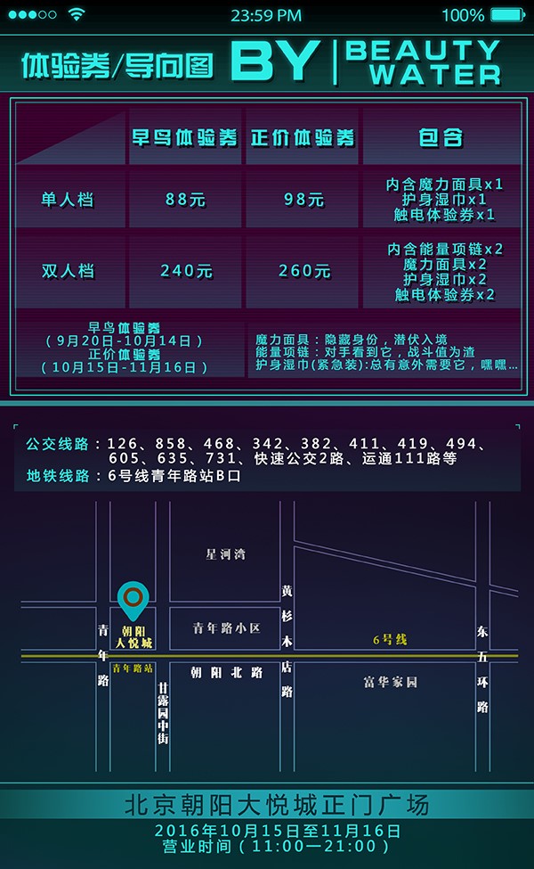 6.在【触电】体验进场前,请将身上携带的一切可进食的物品自行处理,场内谢绝带入;