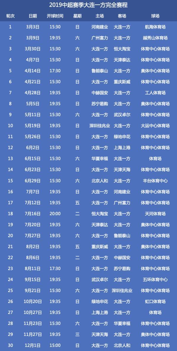 2019赛季赛程表