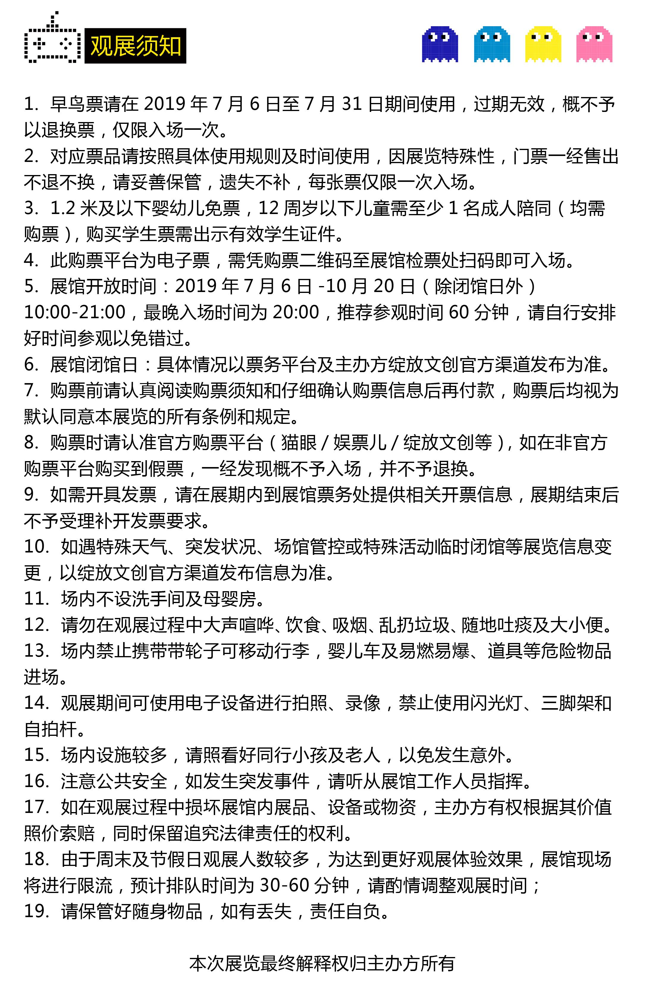 | 入场时间 | 周一至周日10:00-22:00(21点停止入场) | 限购说明 | 每单限购6张 |