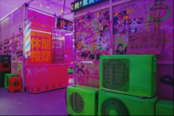 展区营造先锋的复古未来概念,把中国市井文化元素融入cyberpunk艺术之中,打造出一条具有80年代复古氛围的超未来时空街区。街区由10多个独立的装置单元构成,超现实风格的体验装置给观众带来更多互动乐趣。