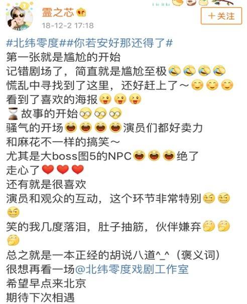 北纬零度戏剧工作室倾力打造以让观众欢笑为本的舞台剧演出,以多种样式融合的喜剧风格获得了各地观众的喜爱和支持。力求创作、制作、推广具有"北纬零度"工作室鲜明风格的舞台剧作品,不断推出风格各异且具有时代精神的优质戏剧。让您捧腹大笑放松压力的同时,又可以找到情感的宣泄和意义的共鸣。 截止2019年,常态演出场次达3000场,全 国各地巡演也逾百场,获得众多观众的支持和好评。2016年、2017年获得全 国票房前十。