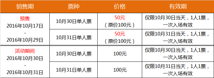 活动时间:2016-10-30 至 10-31,19:00-23:00(22:30停止入场)