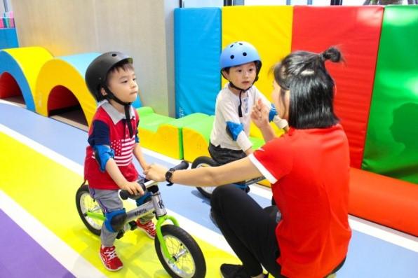 经过专业老师的半个小时指导,孩子就能够初步掌握骑车技巧。
