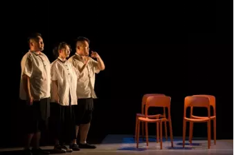全剧由两男一女3位演员分饰超过20个角色。在人物的快速转换中,演员将声音与肢体的多元性发挥到极 致,仅用4张折叠椅与3张高脚椅,演绎多个不同生活片段,探讨都市中错综诙谐的人际关系与荒谬现象。