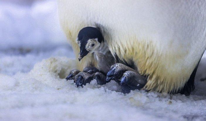 柔弱的帝企鹅宝宝,在帝企鹅爸爸(没错,是爸爸哦)的精心呵护下茁壮成长。晚点过来可能就错过了它成长的过程啦。