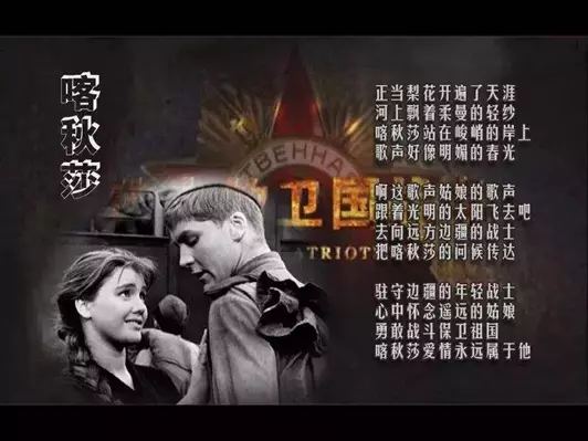 《喀秋莎》是二战时代苏联爱情歌曲。描绘的是前苏联春回大地时的美丽景色和一个名叫喀秋莎的姑娘对离开故乡去保卫边疆的情人的思念。这首歌曲,没有一般情歌的委婉、缠绵,而是节奏明快、简捷;旋律朴实、流畅。因而多年来被广泛传唱,深受欢迎。2015年中国三军仪仗队参加俄罗斯卫国战争胜利70 周年庆典曾高唱《喀秋莎》通过红场,引发万人 大合唱。