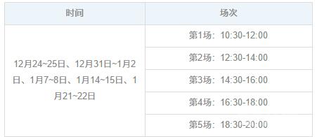 *具体开放时间:12月24~25日、12月31日~1月2日、1月7~8日、1月14~15日、1月21~22日,每天5场。