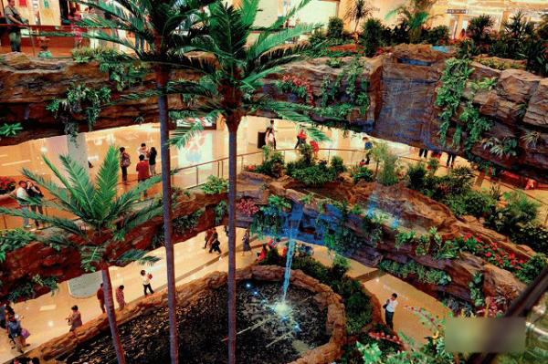 室内喷泉:超大规模造景,还有能喷三层楼高的音乐喷泉。