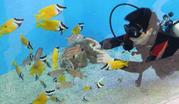 海景鱼缸:每天有很多人围观,夜里尤其美丽。