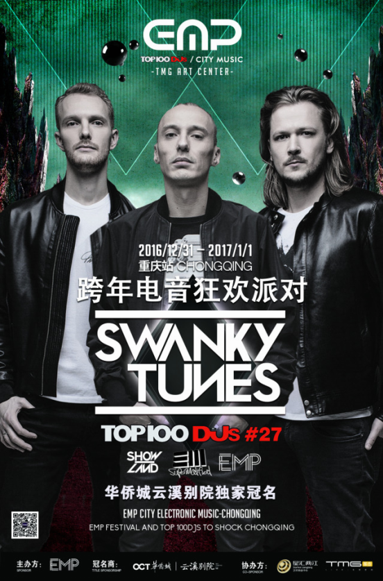 The DJ trio ranked 27th in TOP 100 DJ MAG(the music producer of movie series Fast and Furious) is visiting Chongqing to spend the New Year's Eve and welcome 2017 with Chongqing ravers.