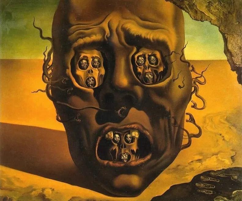 本次展览上,达利的经典作品《战争的面孔》也将展出。这幅画油画版曾在欧洲卖出高价,作品创作于西班牙内战与二战期间,被认为集中表现了达利对战争的看法,描绘了一张在沙漠中贫瘠的脸,脸像尸体一样枯萎,它的嘴和眼窝里是相同的面孔。
