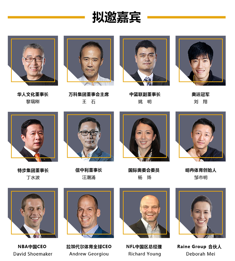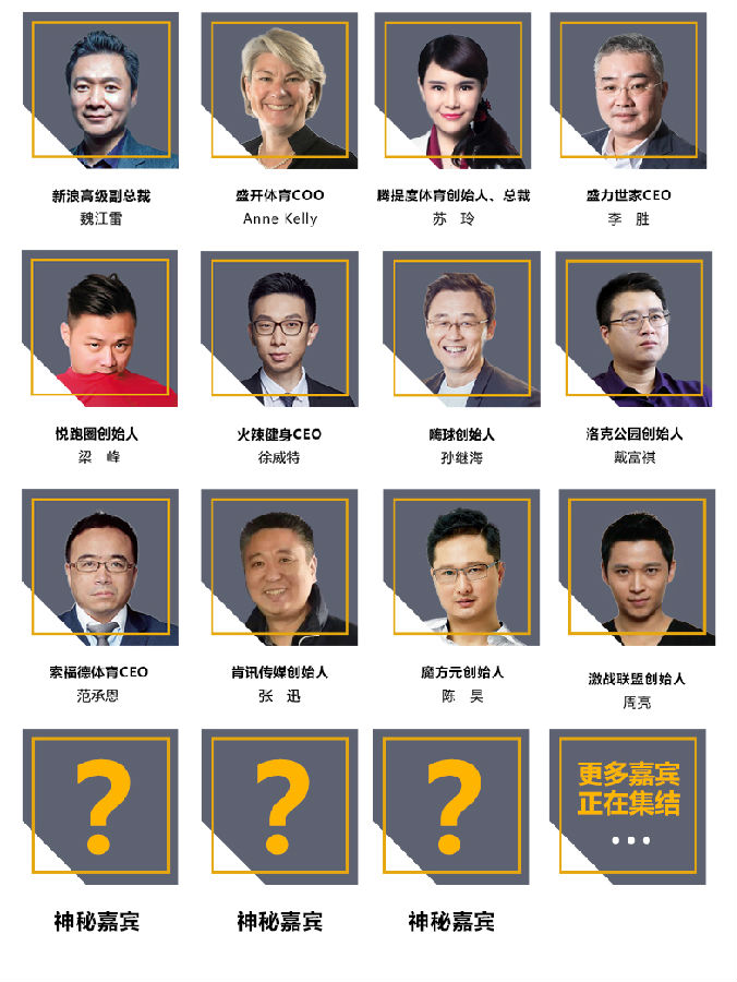 100多位体育、娱乐、互联网神秘嘉宾将会空降上海现场,围绕“生活方式”、“资本跨境”、“国际赛事”、“文化娱乐”、“品牌转型”、“互联网体育”六大高峰主题论坛进行现场激辩,同时我们将与众明星在“赶路人之夜”晚宴上揭晓体育产业、创业、新三板等多个维度的年度奖项,奖励在路上的领跑者。更多神秘嘉宾正在集结。