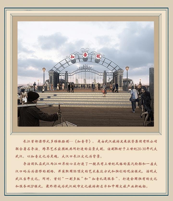 该剧以知音文化为灵魂,以大汉口长江文化为背景,故事取材于上世纪20-30年代的大武汉。导演团队在武汉市两江四岸核心区打造了一艘具有上世纪20-30年代风格的蒸汽轮船及一座大汉口码头,船和码头即剧场,演出将以在长江上漂移的方式进行,活现大武汉当年文化。