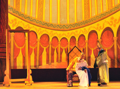 迪斯国的皇帝是个大胖子,没有其他的爱好,就喜欢漂亮的衣服。于是他找到了无数的裁缝来给他做漂亮衣服,但是因为皇帝身材过胖脾气又过于暴躁,没有几个裁缝敢给他做衣服,除了伊娃。她做的漂亮衣服深受皇帝的嘉奖,而伊娃的愿望仅仅是能跟女儿在一起安度晚年,并不想升官发财。骗子阿呆和阿瓜想跟伊娃学习手艺以便混口饭吃。结果好吃懒做的兄妹两个什么本事都没学到。爱投机取巧的妹妹想出了馊主意:他们要为皇帝的衣服只有聪明的人才能看到,笨蛋根本看不到这件衣服。他们骗取了皇帝的信任,住进了宫殿的裁缝馆,开始日夜赶工做这件神秘的新衣……