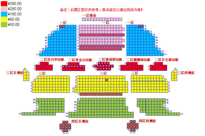 演出票价:280 180 80 50 380(包厢)