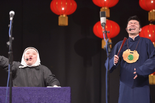 龚杰、李建新带来传统新编《拴娃娃》,原是一对恩爱夫妻,却因无后险些分道扬镳,幸由老和尚开光得一大胖小子。一个喜当爹的故事就此发生……