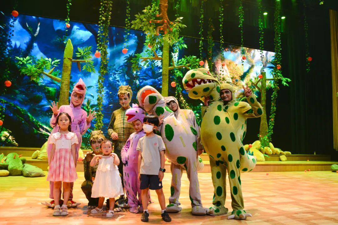 在表演过程中,演员会与观众互动,增强孩子们的参与感和兴趣。在演出进行到第十五分钟的时候,恐龙们纷纷走下舞台,来到观众席与小朋友们“大手牵小手”。
