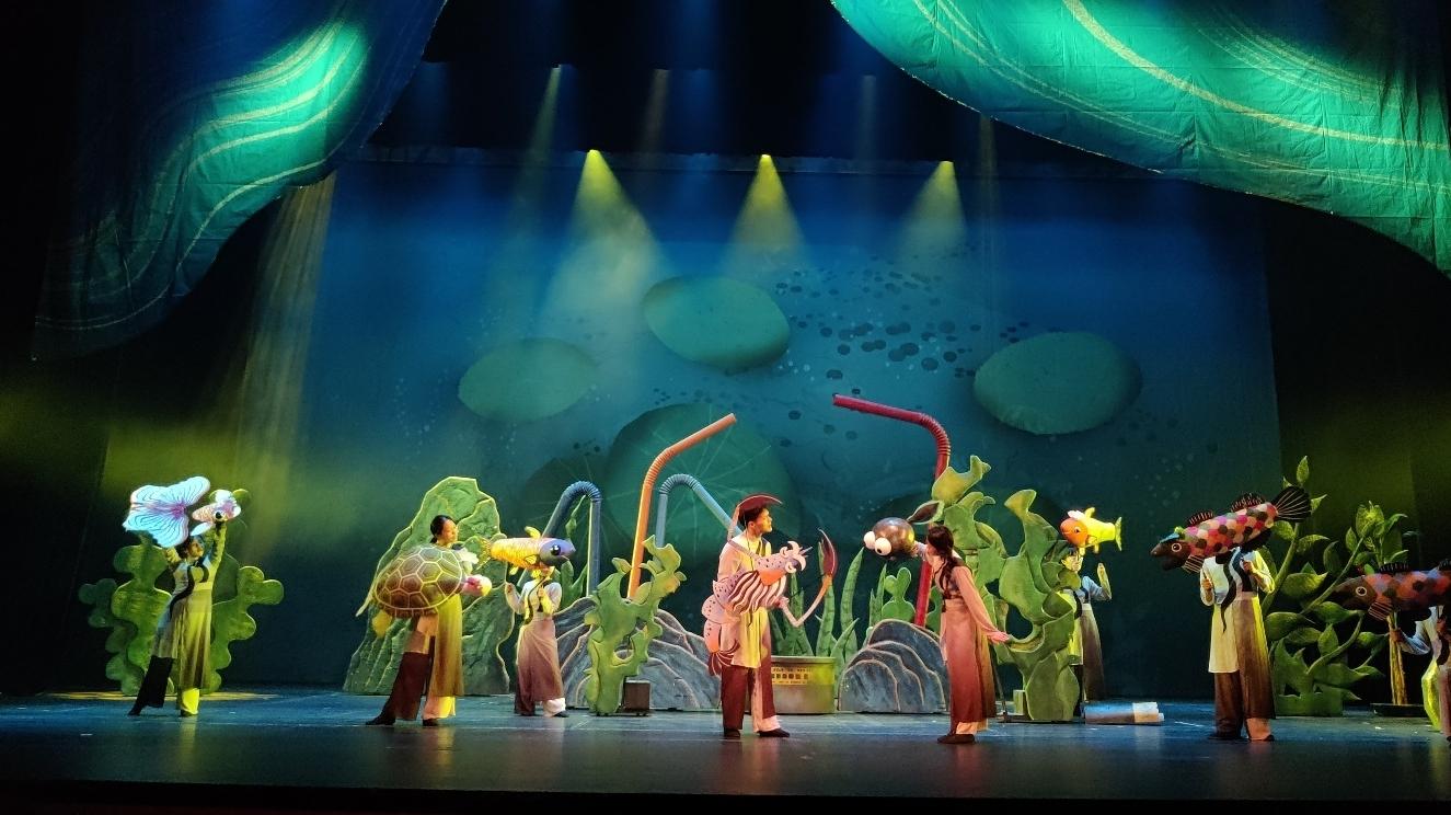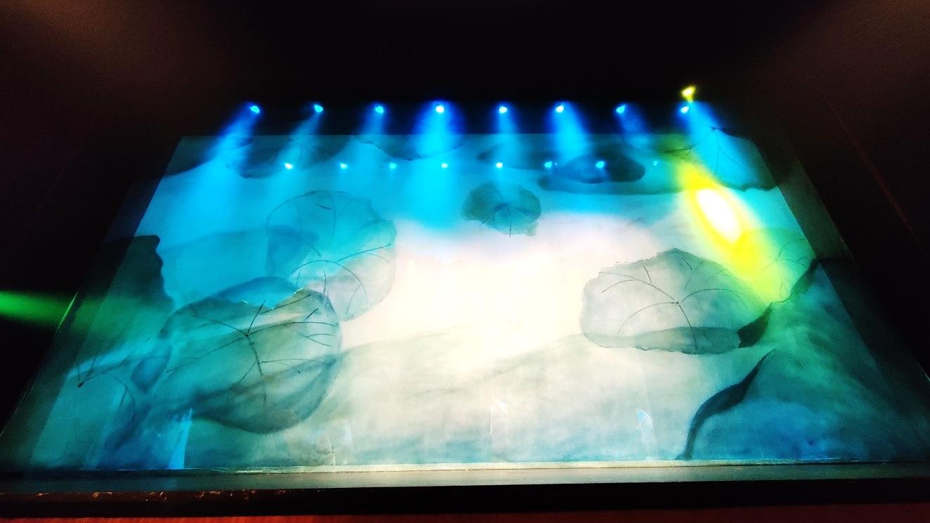 传统的舞台,只能利用幕布和景片来构建氛围,此次小蝌蚪找妈妈的故事,将结合多媒体投影技术,在舞台上投射出水泡泡、水流、小鱼小虾的游动,雨滴荡起的涟漪等等画面,让整体河底世界的氛围更加生动。