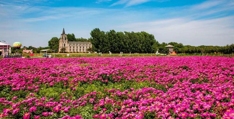 香草园(国家 AAA 级)是山东省最早种植香草的农业园区。拥有大面积的浪漫花海,这里遍植世界各种香草,以象征爱情的薰衣草和马鞭草为主,此外还有白牡丹、板蓝根、虞美人、猫薄荷等上百种花草。园内景观有复古大教堂、复古蒸汽火车、欧洲街、热气球、五角枫林等。
