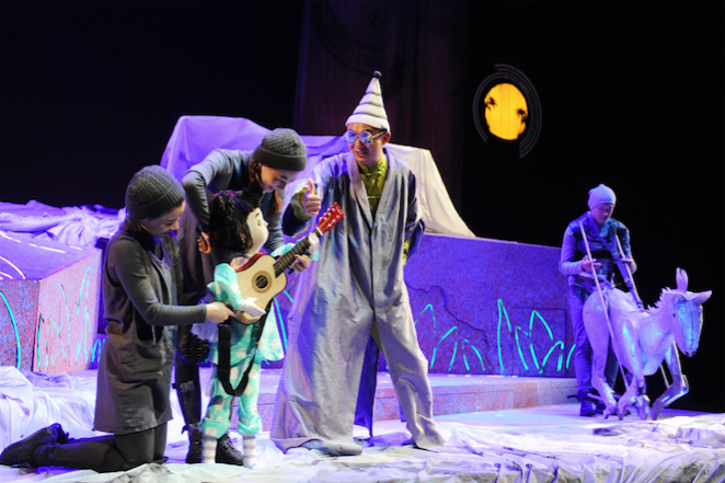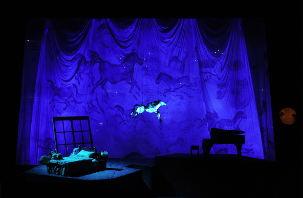为上剧场特制的《蓝马》,由著名舞台服装设计师Sandra Woodall做舞美和特殊服装设计,根据20世纪初年表现主义“蓝色骑士”(Blue Rider)画风而设计的主视觉元素,将孩子带入一个奇妙的旅程。