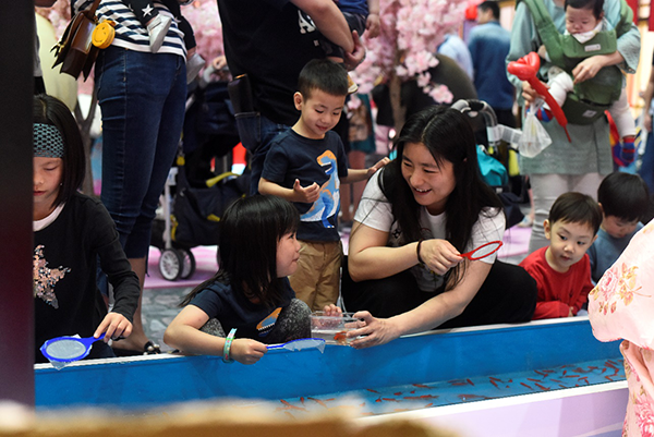 夏日祭上的传统游戏钓水球!这可是十分需要技巧的游戏哦,大朋友们小朋友们不来一试身手吗?
