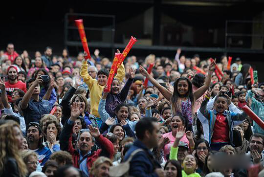 既然叫“大马戏”,怎么可能没有互动。整场演出均有获得国际马戏金奖的搞笑小丑主持串场,他们会在观众中游走、嬉戏、舞蹈,舞者们更是一度会走下舞台邀请观众共舞。