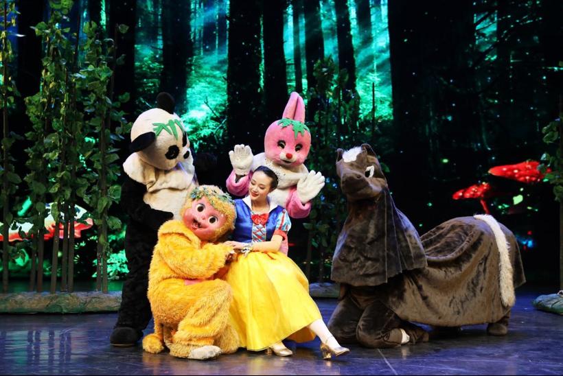 白雪公主跑到森林里伤心的哭泣,小动物们和她一起唱歌跳舞安慰她,并告诉公主丛林深处有一间小木屋可以休息。白雪公主去了小木屋,遇到七个小矮人,他们很喜欢公主,所以收留了她。