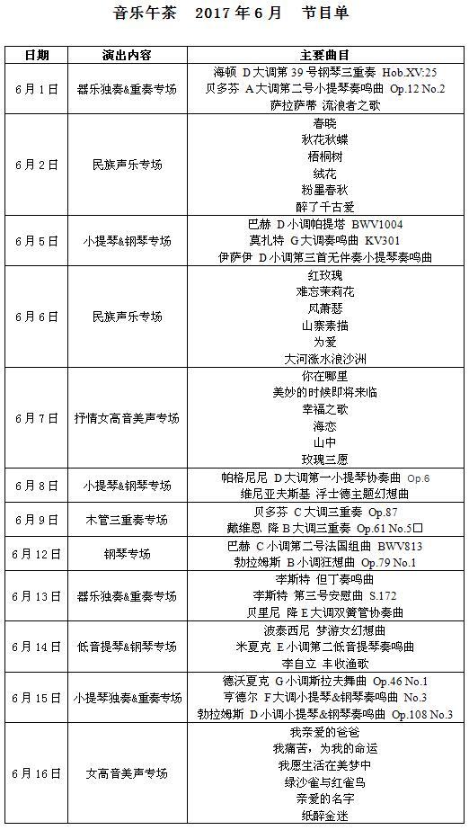 “音乐午茶”呈现室内乐、重奏等各类型风格迥异的音乐会。在午后温暖的阳光里,抛开半日工作的烦忧,坐在音乐厅古典韵味的大堂,聆听一场精致优雅的小型音 乐会,身心彻底得到放松。