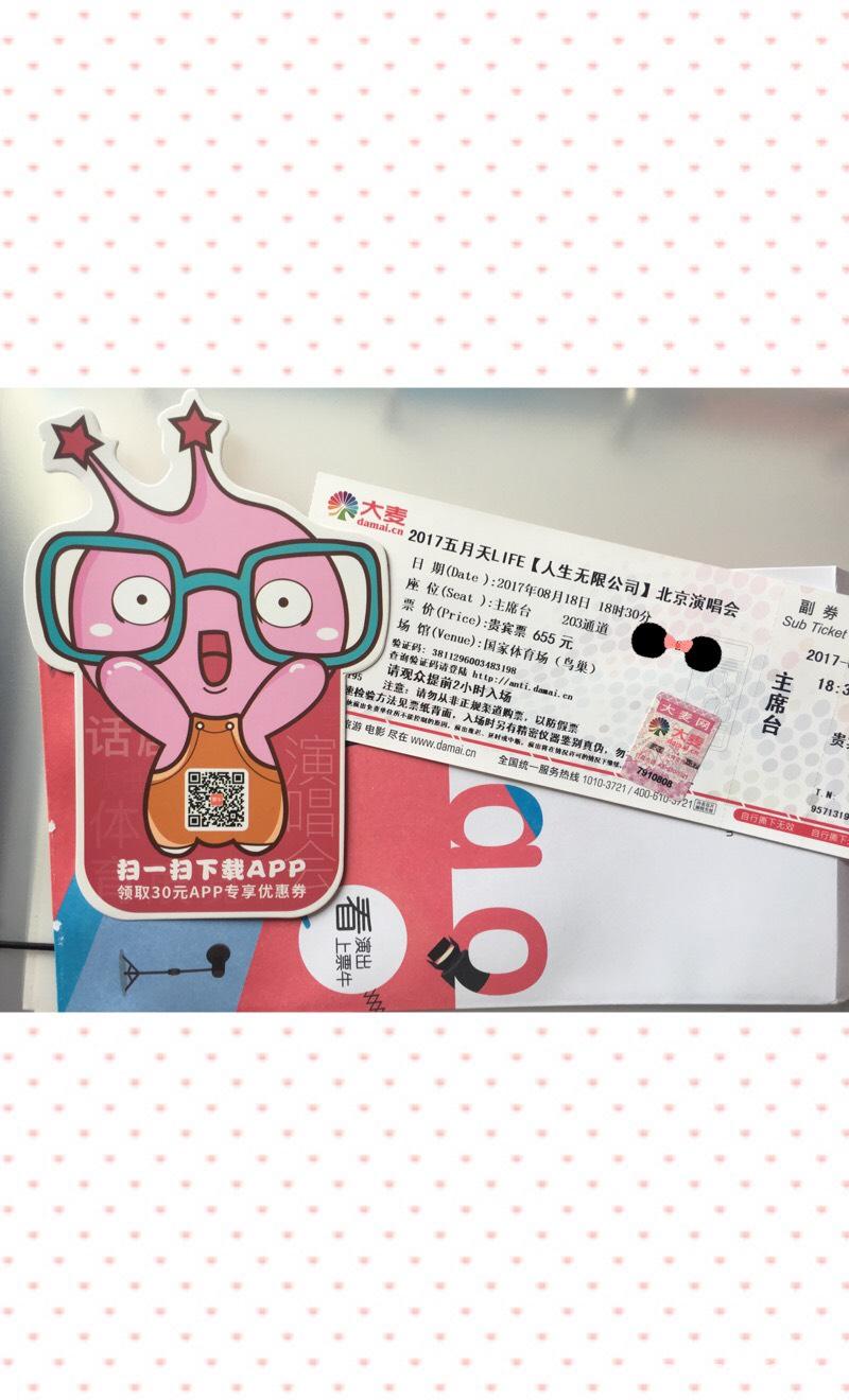 首先说一下,票牛发货真是慢的像一头牛,演唱会开始的倒数第二天才发货,还好在一个离北京只有两小时得地方,拿到票才吐了一口大气,吐槽完票牛的,就该说鸟巢了,现场气氛真的非常好,十万人的现场加上阿信超有节奏的曲风,自然是嗨翻天,最后阶段粉丝还不想走,大喊加班,五月天就又唱了几首经典的老歌,这样粉丝才罢休,总体来说这次演唱会有惊无险,也算给自己一个惊喜吧,带着女票,补个不能陪她七夕的遗憾吧~