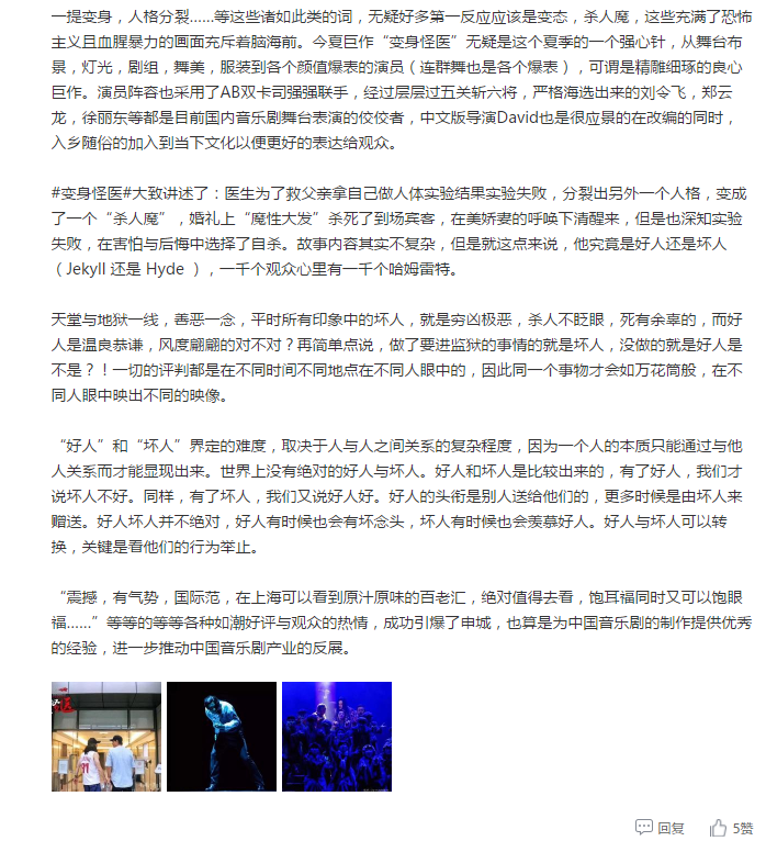这就是《变身怪医》最好的诠释,演员通过高昂美妙的歌声来制造兴奋和激情是这场表演最震撼人心的地方!