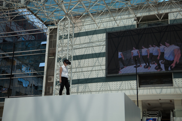 《在云端》,综合媒介:VR、高台(400.300.250cm),张晓影