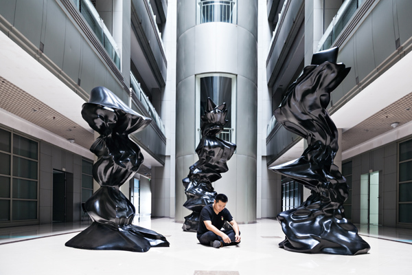 在此展的每件作品中都有一些占据空间的实体,雕塑是一个出发点,包括用废旧的工业材料搭建的双子塔、大烟筒、根据观众的脑电波采集翻模制成的三米多高的雕塑、像从理查·塞拉的雕塑中截取的金属板。实体被新技术延伸,也丰富了新技术的层次。其中几位艺术家也在发掘新媒介手段实现个体叙事的新潜能,他们在同一空间中布置不同时空发生的事件以呈现局部隔阂的方式复述情感联系。他们相信,流动的情感历程本身就可以使作品重新生长出引人进入的神秘感,以抗拒靠分享的国际经验堆积成的冷漠、空虚对观众充满抗拒的作品。