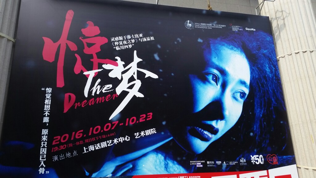 20161011,惊梦。仲夏夜之梦+牡丹亭,壁虎剧团+话剧中心,形式大于内容,节奏紧凑,舞台效果出乎意料的赞!美子妞完成的中规中矩,肢体这方面是她的优势。