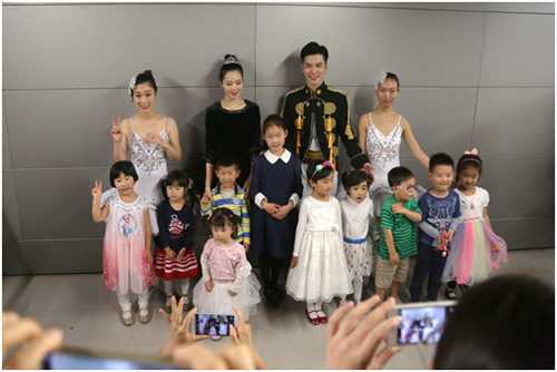 演出终场,小朋友可以与天鹅公主、王子们一起合影留念!