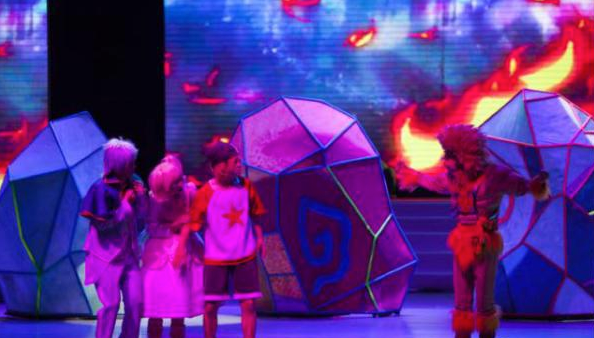 洛克王国从广为人熟知的线上社区游戏,到衍生出线下同名主题舞台剧。舞台剧沿袭洛克王国线上游戏的传统,以魔法王国为主题,打怪场面以魔法对抗作为交代,没有暴力血腥场面的刻画,通过多媒体视频、舞美变化以及音效来体现情节的跌宕起伏。