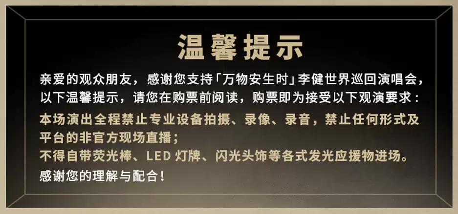 | 重要提示 | 演出现场气氛热烈,请您务必根据自身身体状况酌情是否购票参与观演,特别是患有心脏类疾病、急性心脑血管疾病、心肌炎、高血压等相关疾病的人群,请您务必遵照医嘱,结合病史及个人身体状况进行观演,观演期间请自行承担身体健康相关责任。 | 温馨提示 | 购买前请您提前规划好行程,做好相应准备,以免影响您的正常观演,感谢您的理解和配合。 若演出受不可抗力影响延期或取消,票牛将对演出票订单按照项目官方通知方案进行处理,其他因观演发生的费用需由您自行承担。 |