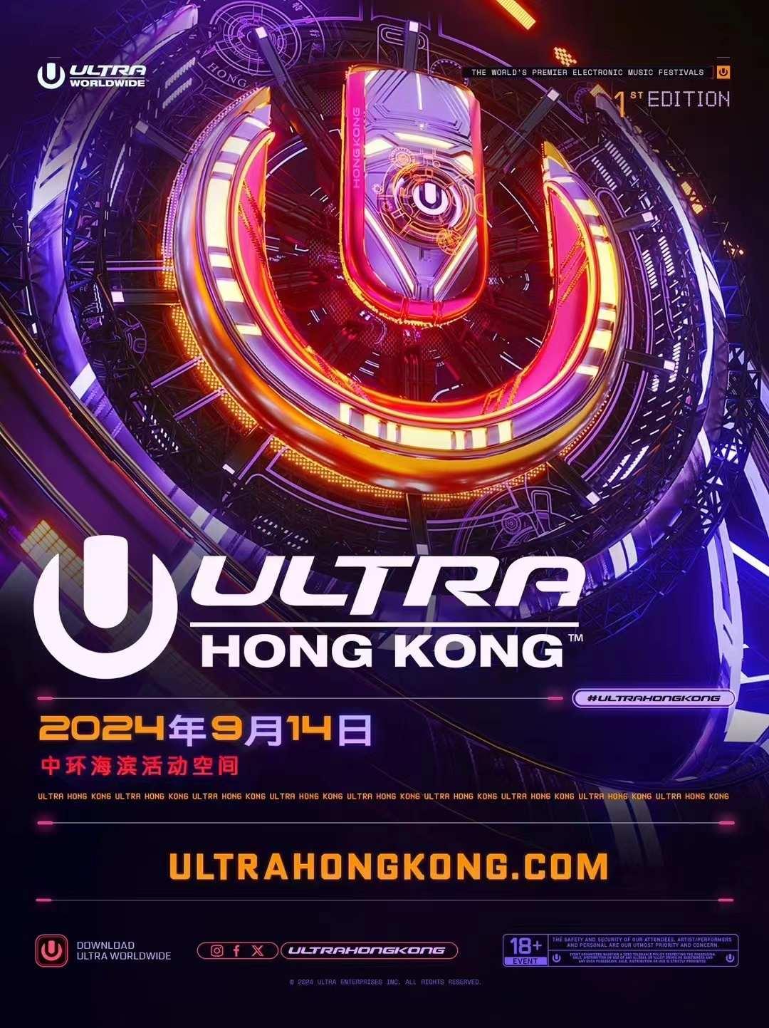 Ultra worldwide 刚刚宣布了备受期待的首届Ultra Hong Kong活动,这标志着自2018年以来该地区的第一个Ultra worldwide 的活动。这场为期一天的活动将于2024年9月14日(星期六)在香港中环海滨活动空间举行,承诺将给观众带来 制作与全球最炙手可热的电子音乐表演。