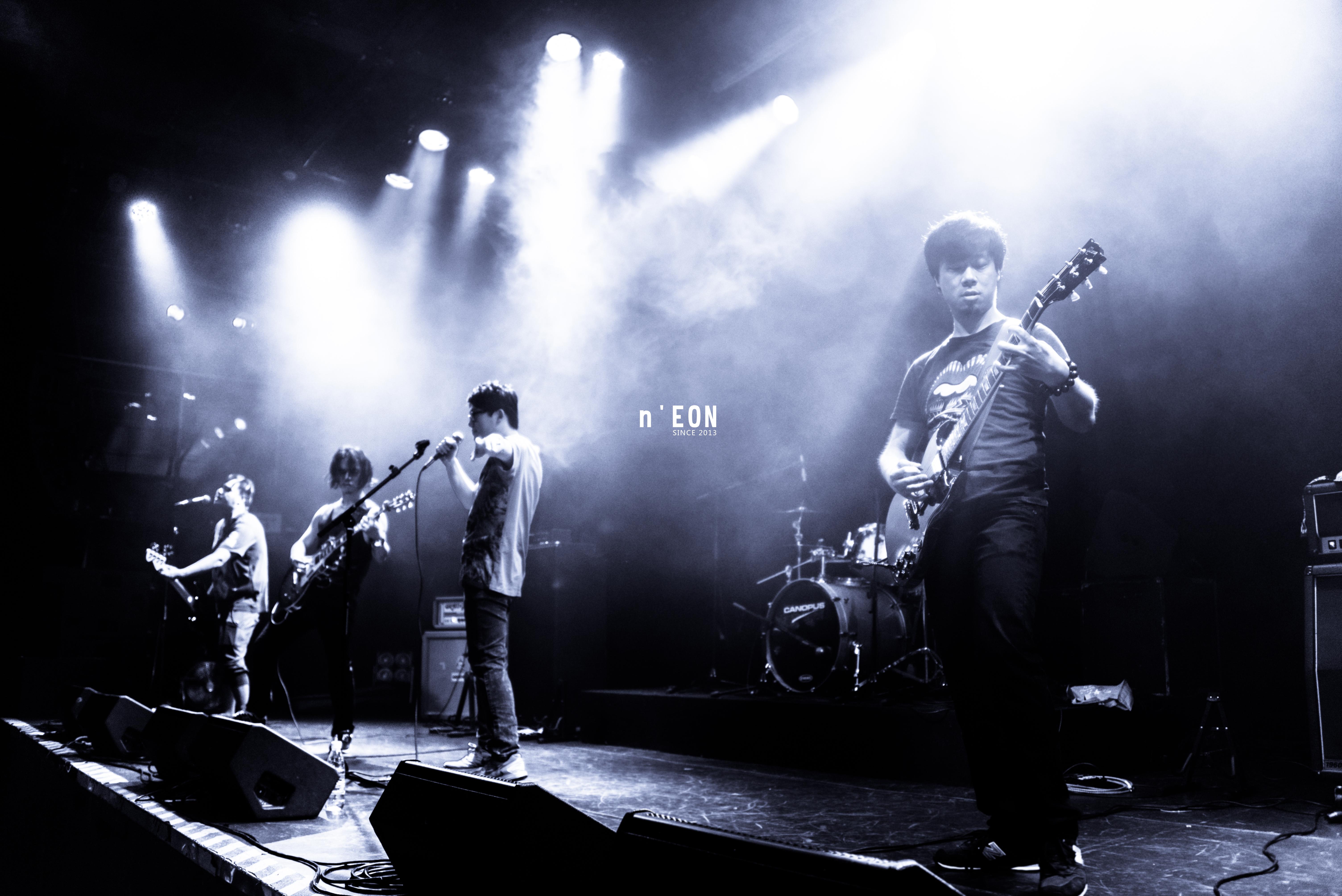乐队的名字来自“nothing else but Eight O'clock Nights”这句话的缩写,原因是我们当时的排练时间总是约在晚上8点,所以‘晚上八点有事’时常会挂在嘴边,于是就有了我们乐队的名字n’EON,念作“尼欧”