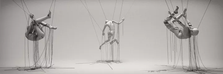 林万山的作品在数字化空间中变幻,着眼于建构一种新的关系,人与人之间特殊的空间构架,人与他人、与空间的联系。田晓磊作品则出入于宗教与欲望的多重视角,以动画特有的奇幻感重新阐述当下的困惑与痛苦。夏航则以精细冰冷的金属部件,重构原本灵动的物象和器官,赋予一种极具未来感的新的灵魂。