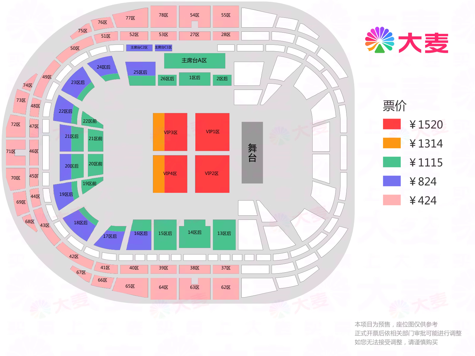| 限购说明 | 每单限购6张 | 重复购票说明 | 同一位“实名观演人”请勿在多个售票平台重复购票,一位“实名观演人”的身份信息对应同场次的一张门票。 若同一位“实名观演人”被发现存在多个购票平台购买同场次行为,由该行为产生的无效重复订单、退票手续费、过期不可退票、无法入场等所有损失,均由购票人自行承担。 |