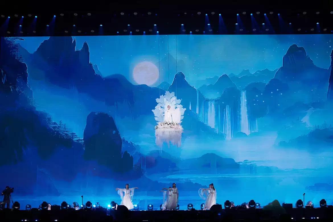 超长LED+圆形数控结构,将“天圆地方”的设计理念融入舞台,中国传统文化与舞美设计相结合,更适配艺人气质。
