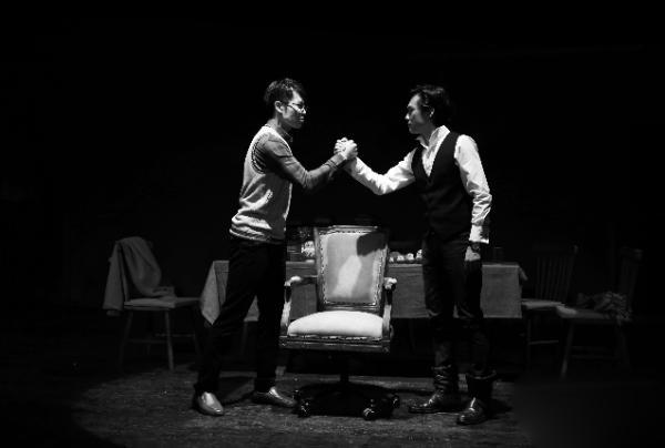《青春禁忌游戏》实验版以精妙绝伦的辩证语言艺术编织出使人不寒而栗的阴谋诡计。从开场虚假的温情到逐渐暴露的险恶用心、再到毫不掩饰的威逼利诱,理想与实干、崇高与险恶、真诚与虚伪、坚守与困惑、自律与自由在小小的舞台上卷起惊涛与暗涌。舞美设计虽没有炫目夺人的布景与灯光,也没有精心打造的道具,却完成了开场极简空间到场景破败狼藉的过渡,以情节与人物命运的转变烘托出舞台氛围的明暗转合。而语言作为诠释人物思想与灵魂的载体,激发了整部话剧矛盾冲突。它通过人物自述揭示了各自的性格特征和悲剧特质,又以“游戏”双方的言语较量及对现实的控诉,搭建起了关于“生命”与“自由”的思考。