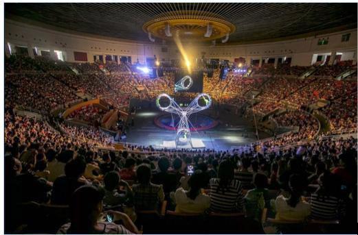 演出在工人体育馆进行,工人体育馆是圆形体育馆,非常适合举行马戏表演!