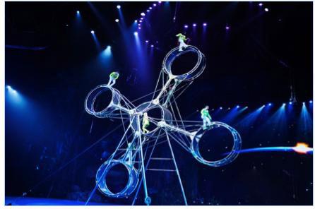 除了小丑艺术家和最全的动物表演,我们还有惊险的高空飞轮表演。飞轮大转盘以2.07秒的一圈的速度飞速旋转,表演者却要在没有任何保护措施的条件下,在直径2米1的飞轮 内、外做出各种高难度的惊险动作。大飞轮转动在生与死的边缘,而表演者在轮上迈出的每一个脚步,都是在向生命发起新一轮的挑战。