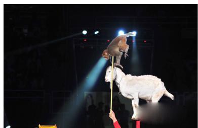想不想看山羊如何展示他的平衡技能在钢丝上稳步走来走去,而调皮的猴子也将在表演中骑在山羊身上做倒立等俏皮动作令观众忍俊不禁。