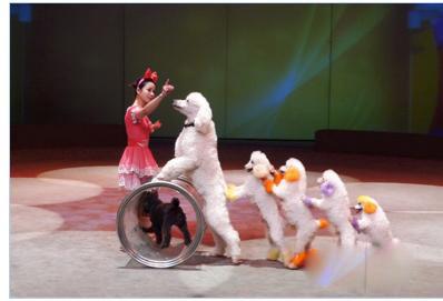 你见过会跳绳的狗狗吗?您见过推着圆桶向主人索要食物的狗宝宝吗?可爱的小狗们将展示看图认字、计算算术题等智力测验,其后它们还将展示倒立、钻圈、跳绳等游戏项目,必将令观众捧腹大笑。