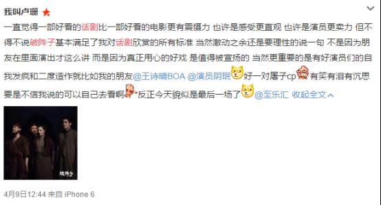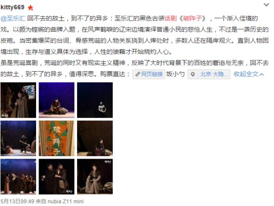这部戏的悲怆之处,不在杀戮,不在被摧毁的美好爱情,而在这个荒诞的“未必自信”。他们的行动已经表明,生于斯长于斯,在骨子里他们会本能地爱他们的故国家园。但正如他们求生所暴露的劣根性,本能止于本能,却让人痛彻心扉。那是他们注定离不开的地方,偏偏又似乎是难以抵达的地方,纠结萦绕如一曲琵琶,让人潸然泪下。隔着舞台,隔着历史的时空,战争与和平其实已淡如烟袅。此去故乡,唯死而已,与辛弃疾的“醉里挑灯看剑”何其相似。只不过,他们是白虎荡的村民。
