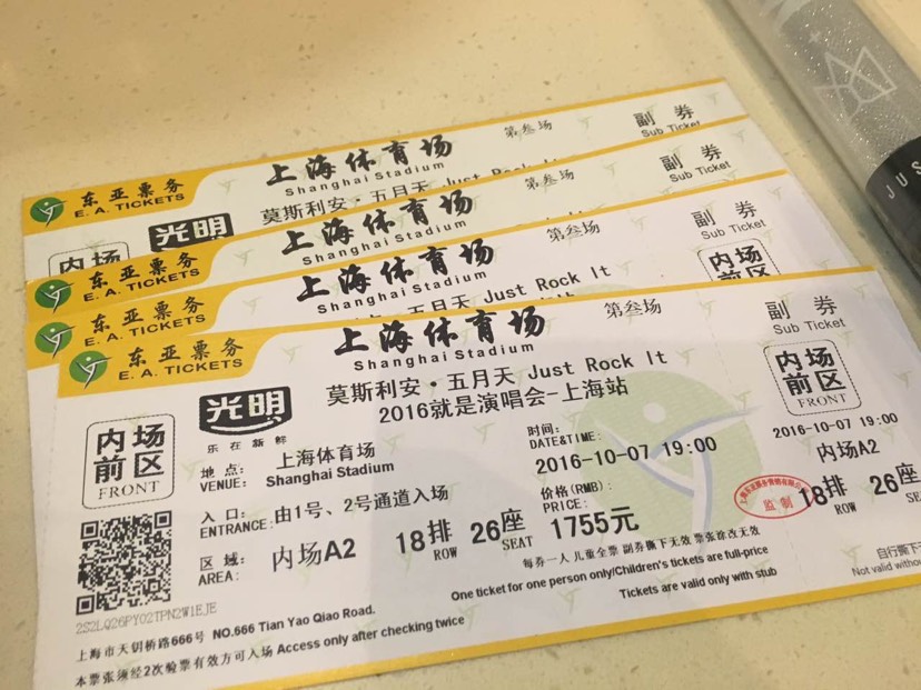 票牛的随机票位置满分😂运气不要太好。五月天的现场真心赞~一口气唱到3个半小时简直全程燃~